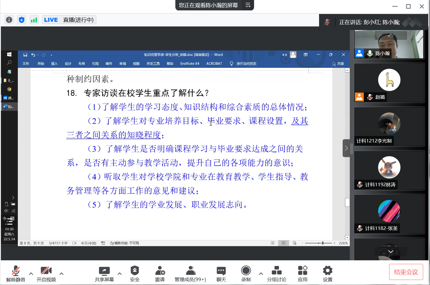 为迎接教育部工程教育专业认证专家进校考查,强化学生主动参与意识,营造积极氛围,5月14日上午,亚洲国产成人精品激情在线在腾讯会议室开展计算机专业学生专项培训会。会议由计算机专业认证核心组成员陈小瀚主讲,学院党委书记谢仕义、院长彭小红、党委副书记周荣伟、计科系主任余应淮、分管辅导员及计算机专业学生共550余人参加。