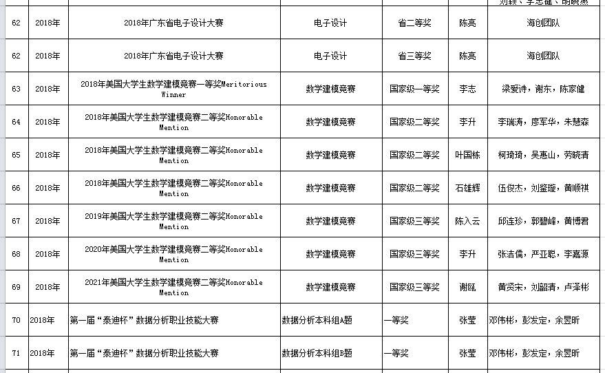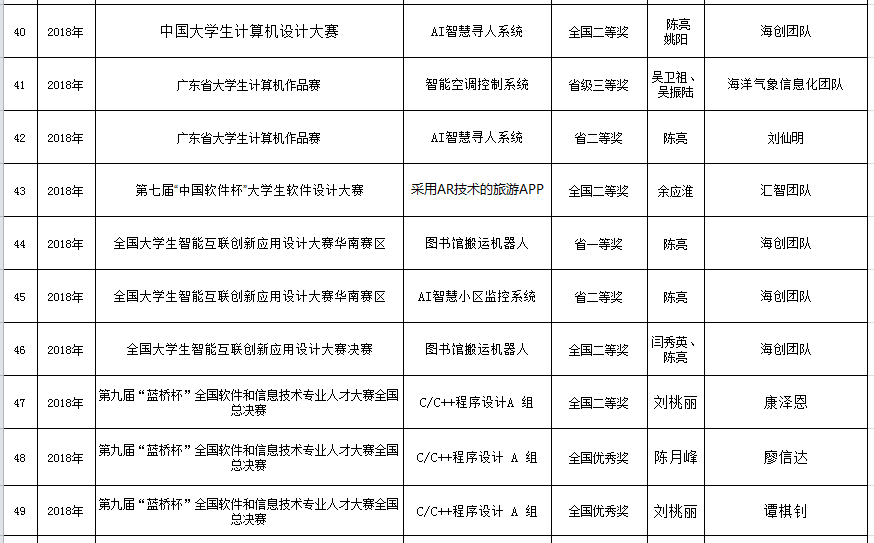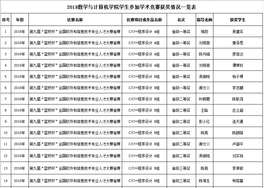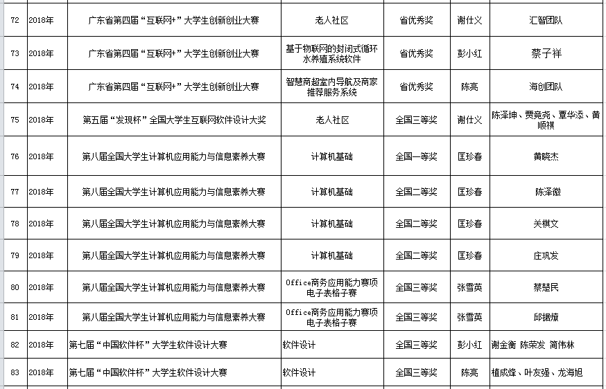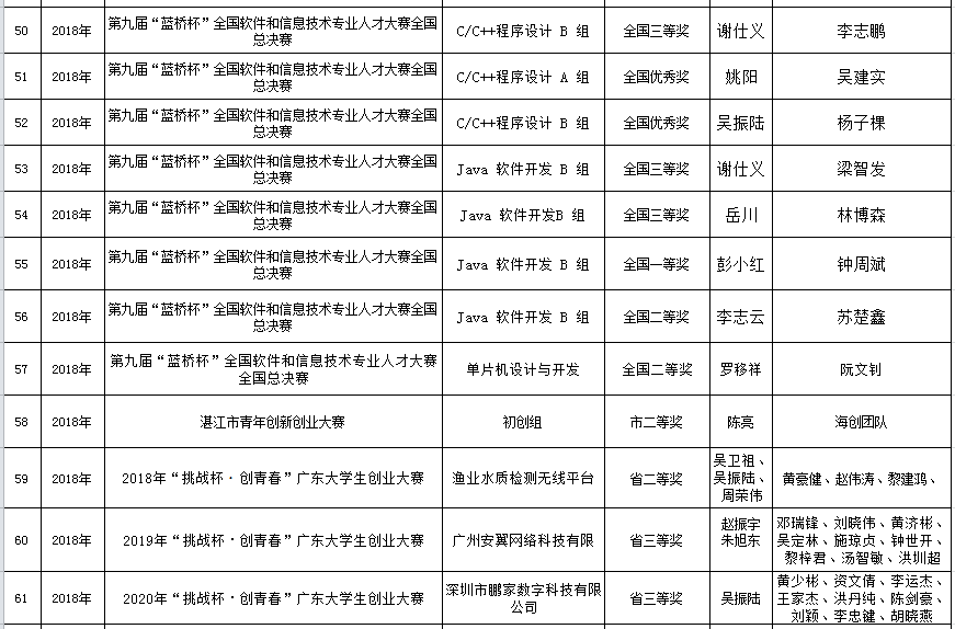 亚洲国产成人精品激情在线学生2018年参赛获奖情况一览表