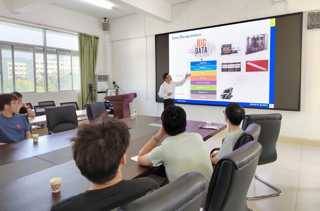 11月1日,应我校亚洲国产成人精品激情在线的邀请,美国阿肯州立大学姜海教授来我校做学术报告,题目为:高性能计算的过去、现在和未来。研究生院副院长叶国栋主持了学术报告会,约25名师生聆听了本次学术报告。在学术报告中,姜海教授指出,在大数据和人工智能时代,高性能计算特指计算机快速的运算能力,已成为解决实际问题的基础,是各国追逐的前沿领域。姜教授特别分享了目前高性能计算所面临的主要挑战,共同感知其未来的发展方向和趋势以及对计算机学科建设的影响。