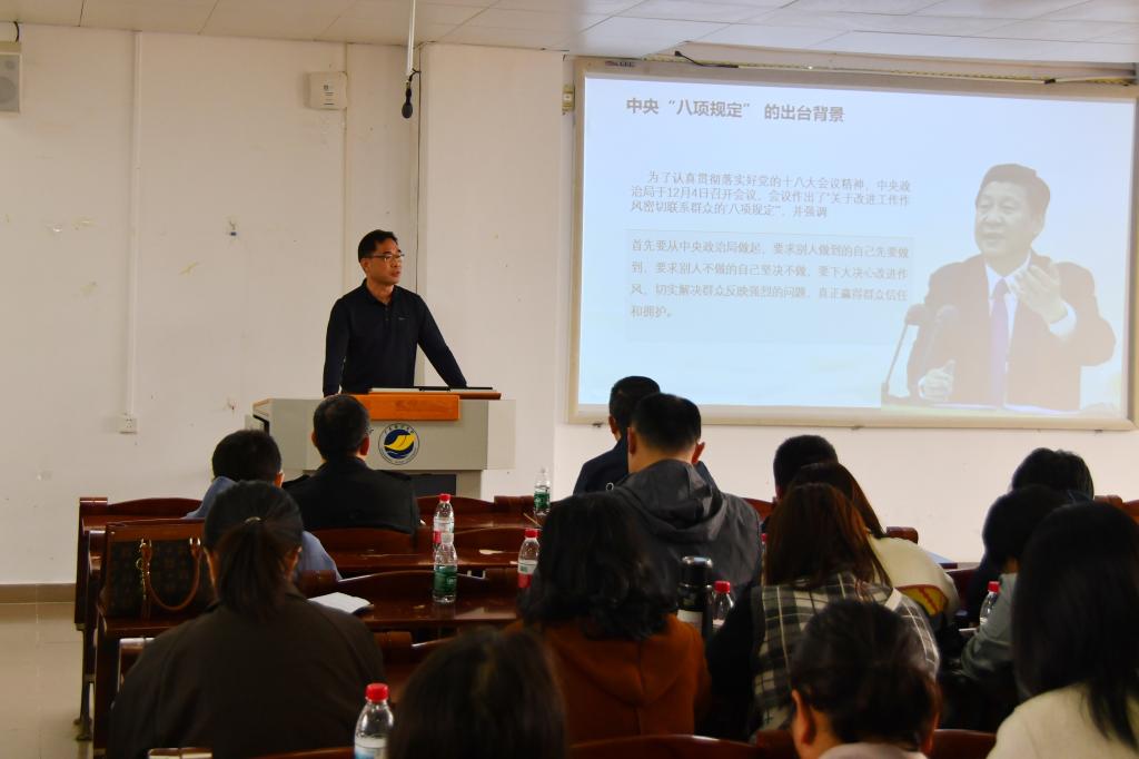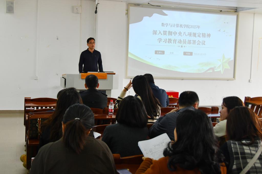 2025年3月19日,亚洲国产成人精品激情在线在明德楼103报告厅召开深入贯彻中央八项规定精神学习教育动员部署会议。学院领导、全体教职工参加会议,会议由学院党委书记龙俊主持。