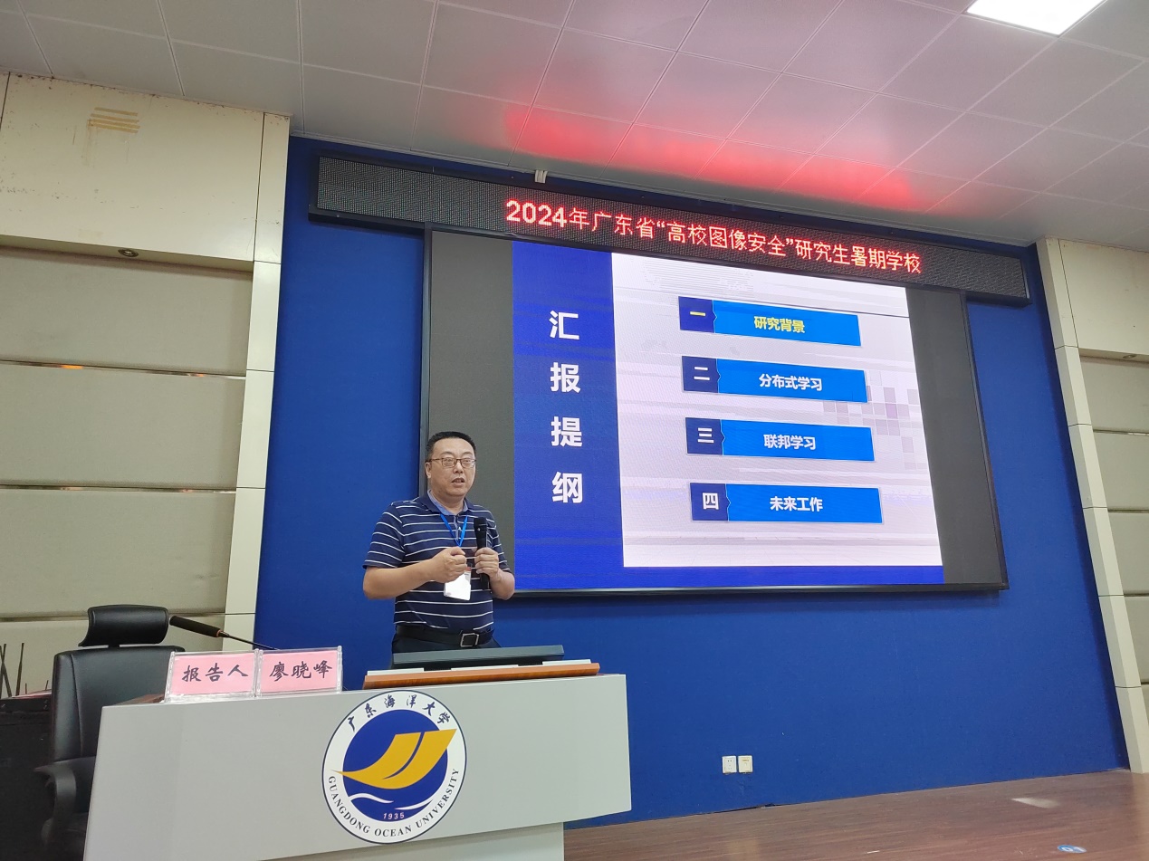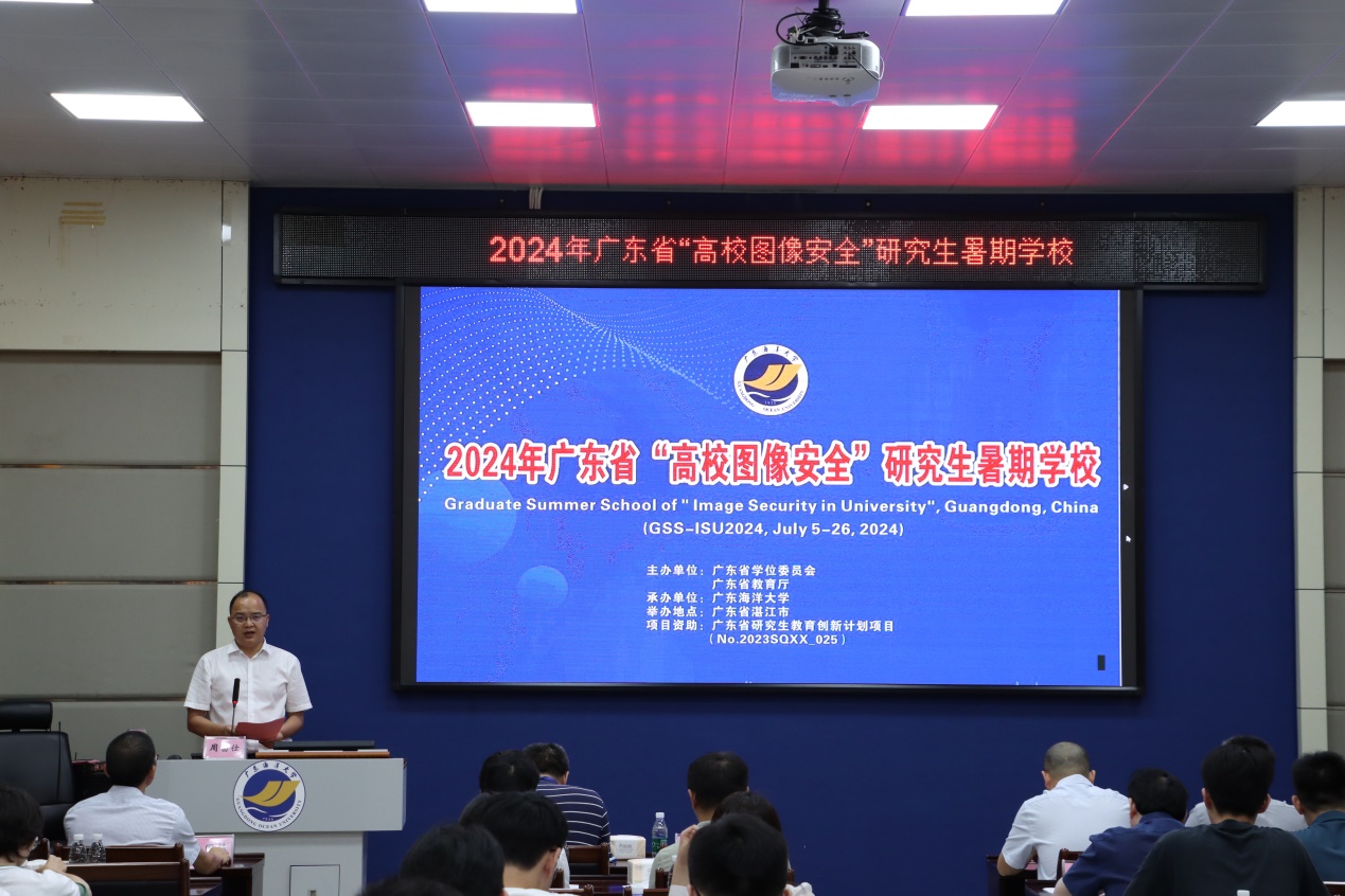 7月6日上午,由广东省学位委员会与广东省教育厅主办,广东海洋大学承办,广东海洋大学亚洲国产成人精品激情在线协办的广东省“高校图像安全”研究生暑期学校在广东海洋大学水生博物馆会议室顺利开幕!我校党委常委、副校长周昌仕教授出席开幕式并致辞,重庆大学二级教授廖晓峰、浙江大学李春光教授、中山大学计算机学院郑培嘉副教授分别作特邀专题报告。开幕式由研究生院院长叶国栋教授主持。