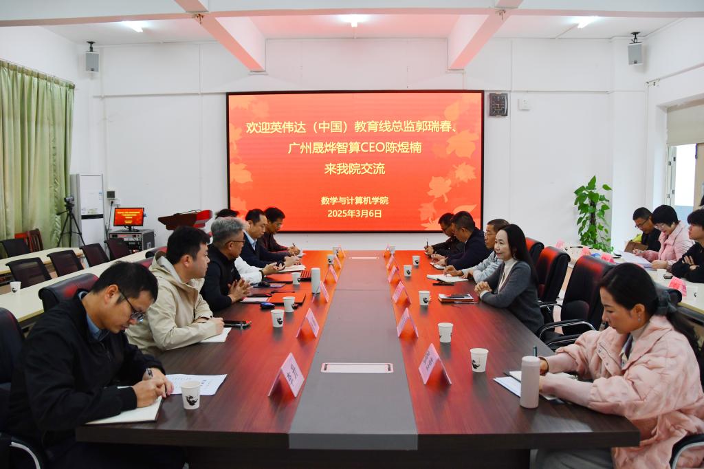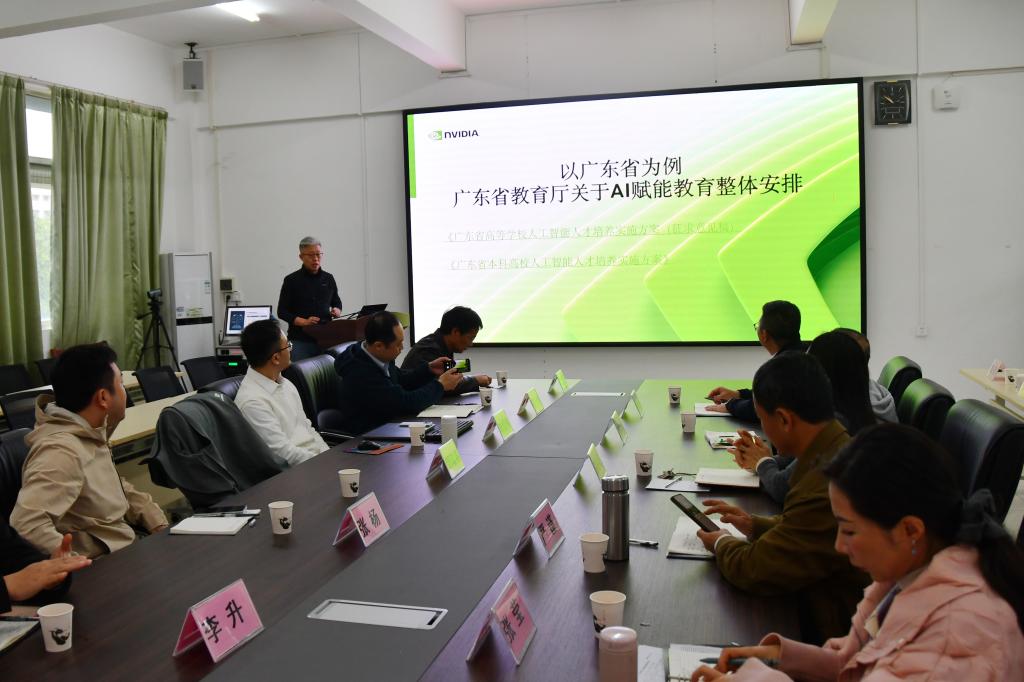 3月6日上午,应亚洲国产成人精品激情在线邀请,英伟达(中国)教育线总监郭瑞春、广州晟烨智算CEO陈煜楠一行来校出席亚洲国产成人精品激情在线人工智能教育教学研讨会。研讨会由亚洲国产成人精品激情在线院长彭小红主持,教务部部长严谨、现代教育技术中心主任张光亚、亚洲国产成人精品激情在线副院长余应淮、各教学系正副主任、计算机公共教学部全体教师参加了研讨会。