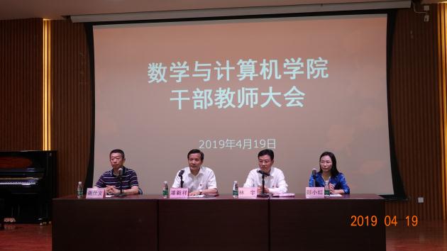 党委书记谢仕义教授代表班子表态,对潘校长给学院发展和班子建设的指导意见一定坚决贯彻落实,牢记使命,不忘初心。他表示将带领班子成员和广大师生大胆创新、务实合作、勤政廉洁、克己奉公,努力使学院在教学、科研、党建、学科建设、专业发展、学生创新创业等工作中取得更大的进步。