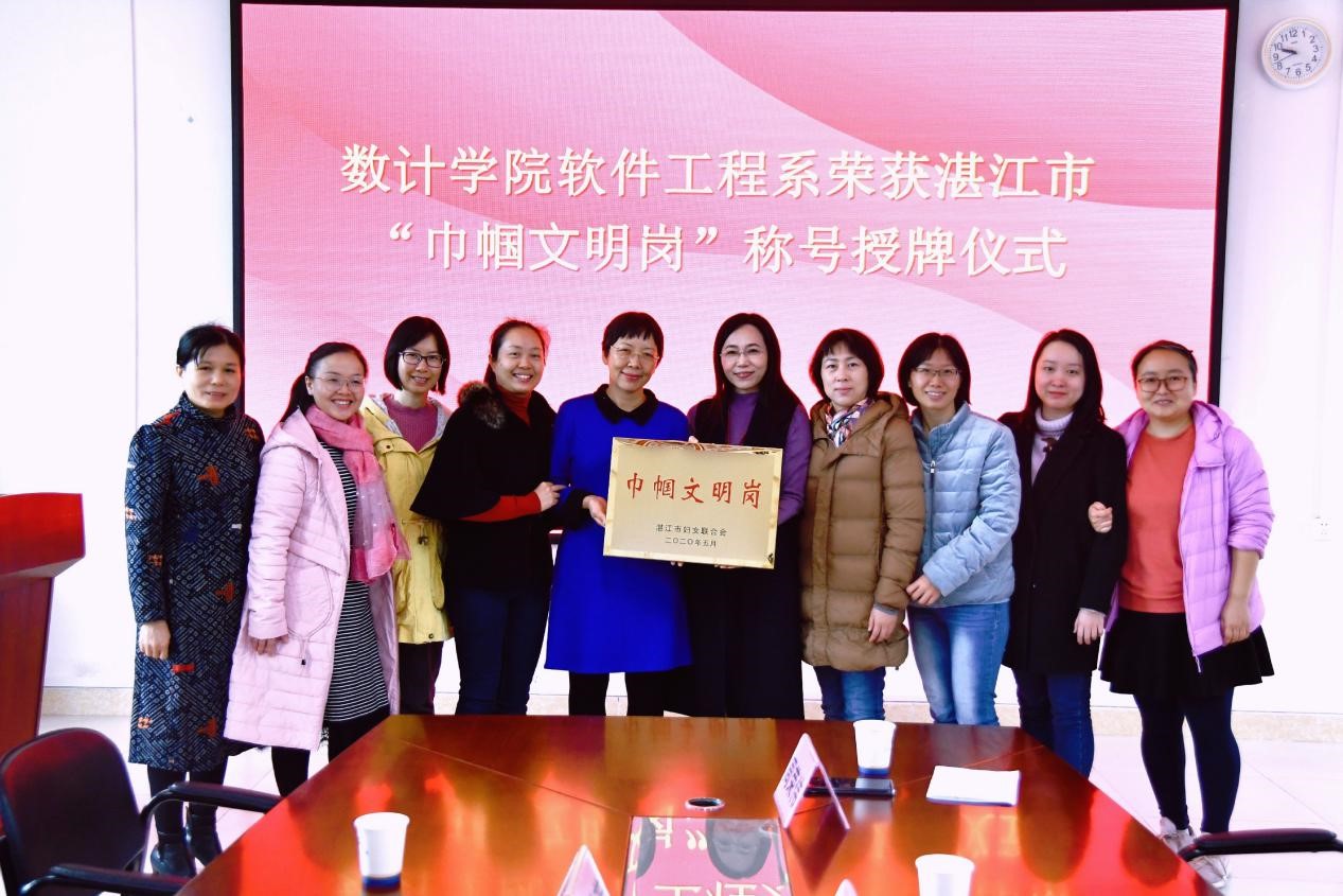 1月7日上午,我院在第二教学楼A座405会议室隆重举行湛江市“巾帼文明岗”授牌仪式,校工会常务副主席李茵、我院党委书记谢仕义教授、院长彭小红教授、副书记周荣伟、软件工程系全体女教工等出席了仪式。