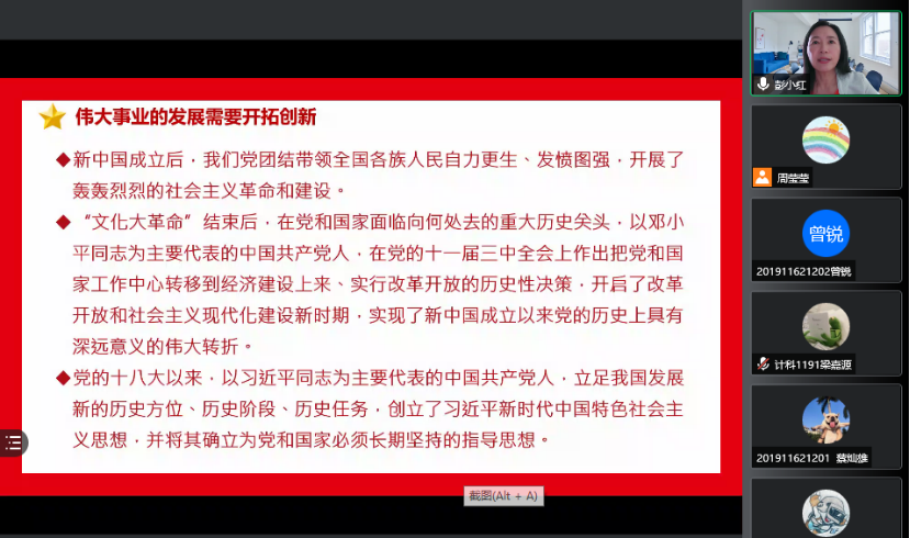 彭院长的课令同学们受益匪浅,大家纷纷表示要在党史中汲取智慧与力量,把个人成长与国家发展、国家命运有机结合起来,承担起属于自己这代人的历史使命!