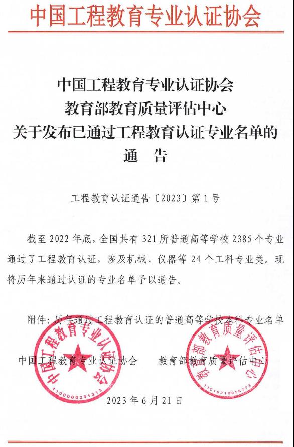 近日,《中国工程教育专业认证协会教育部教育质量评估中心关于发布已通过工程教育认证专业名单的通告》(工程教育认证通告〔2023〕第1号)正式发文,亚洲国产成人精品激情在线计算机科学与技术专业顺利通过认证,有效期为6年(2023年1月至2028年12月)。标志着我院计算机科学与技术专业建设水平取得了历史性突破,实现了专业人才培养质量的国际实质等效,进入了全球工程教育的“第一方阵”。